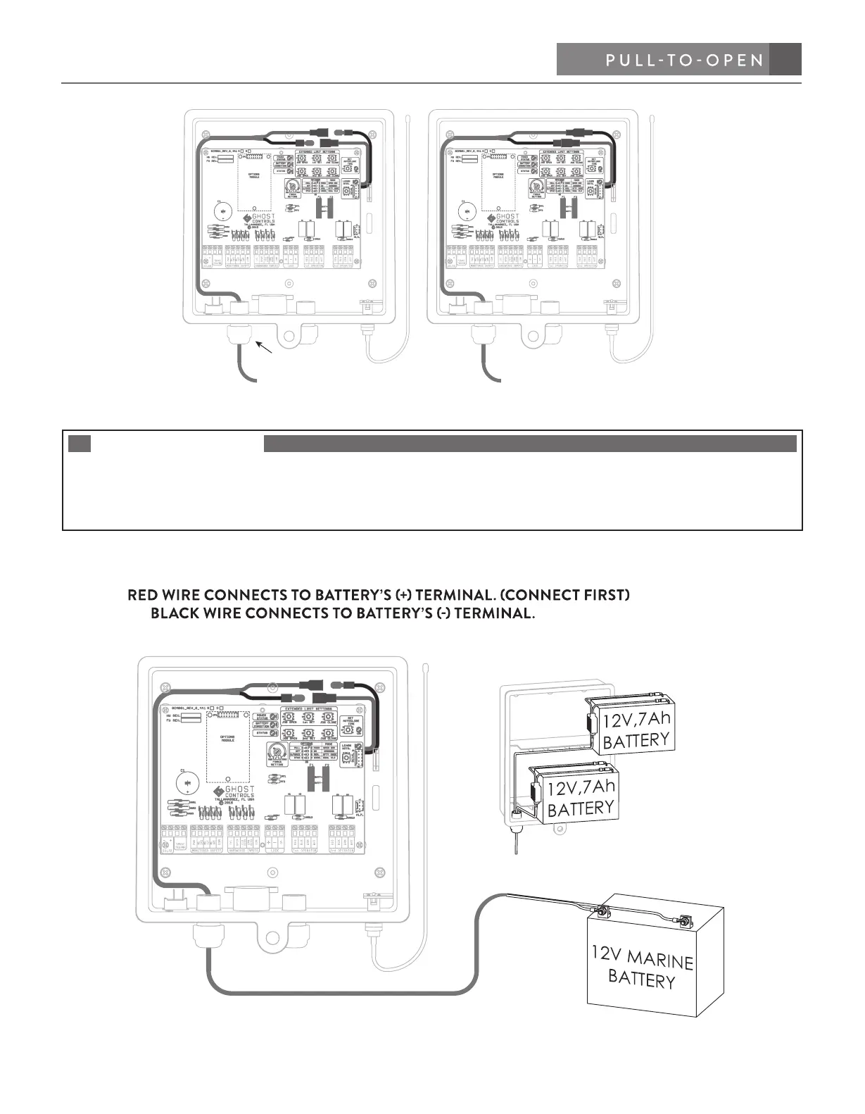 TWO BATTERIES. SYSTEM WILL NOT OPERATE WITHOUT A BATTERY INSTALLED AND CONNECTED AT