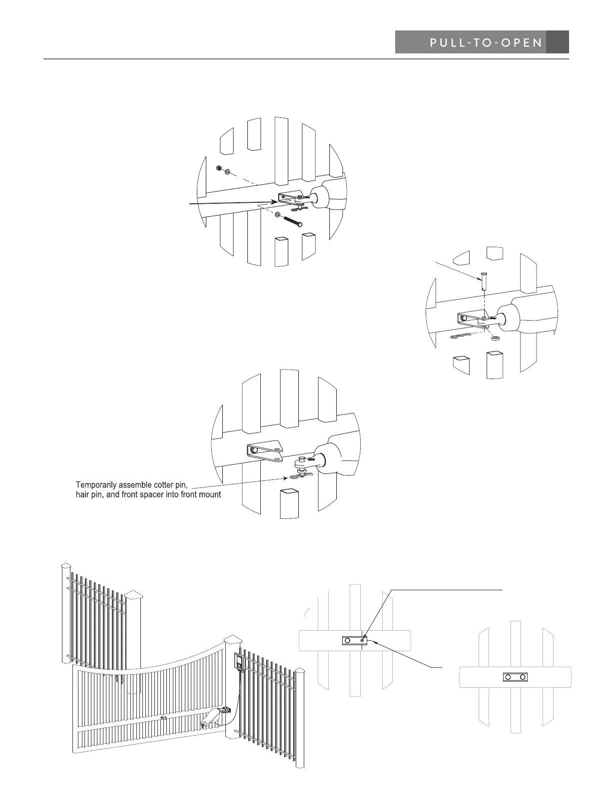the brackets to the gate. MAKE SURE GATE IS STILL IN OPEN POSITION (arm must be fully retracted).