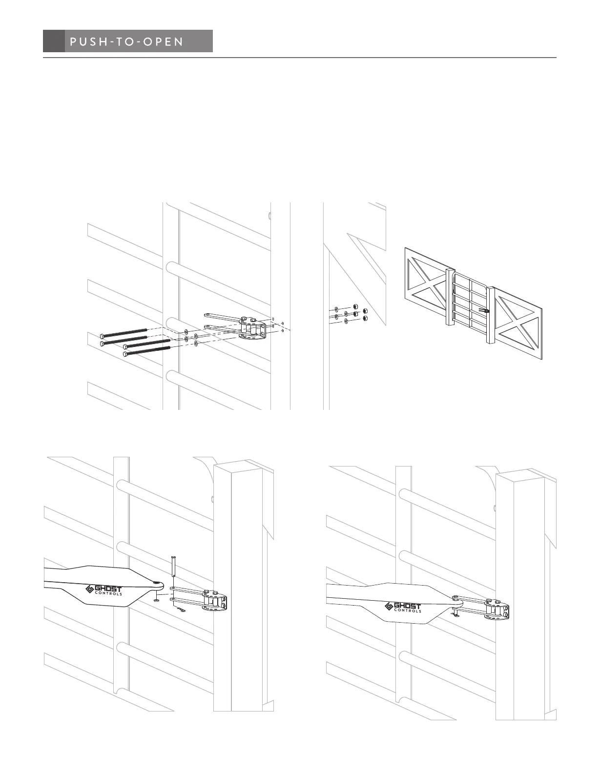 Insert clevis pin, nylon spacer, and clevis hairpin as shown below to secure the rear of the operator to the post.