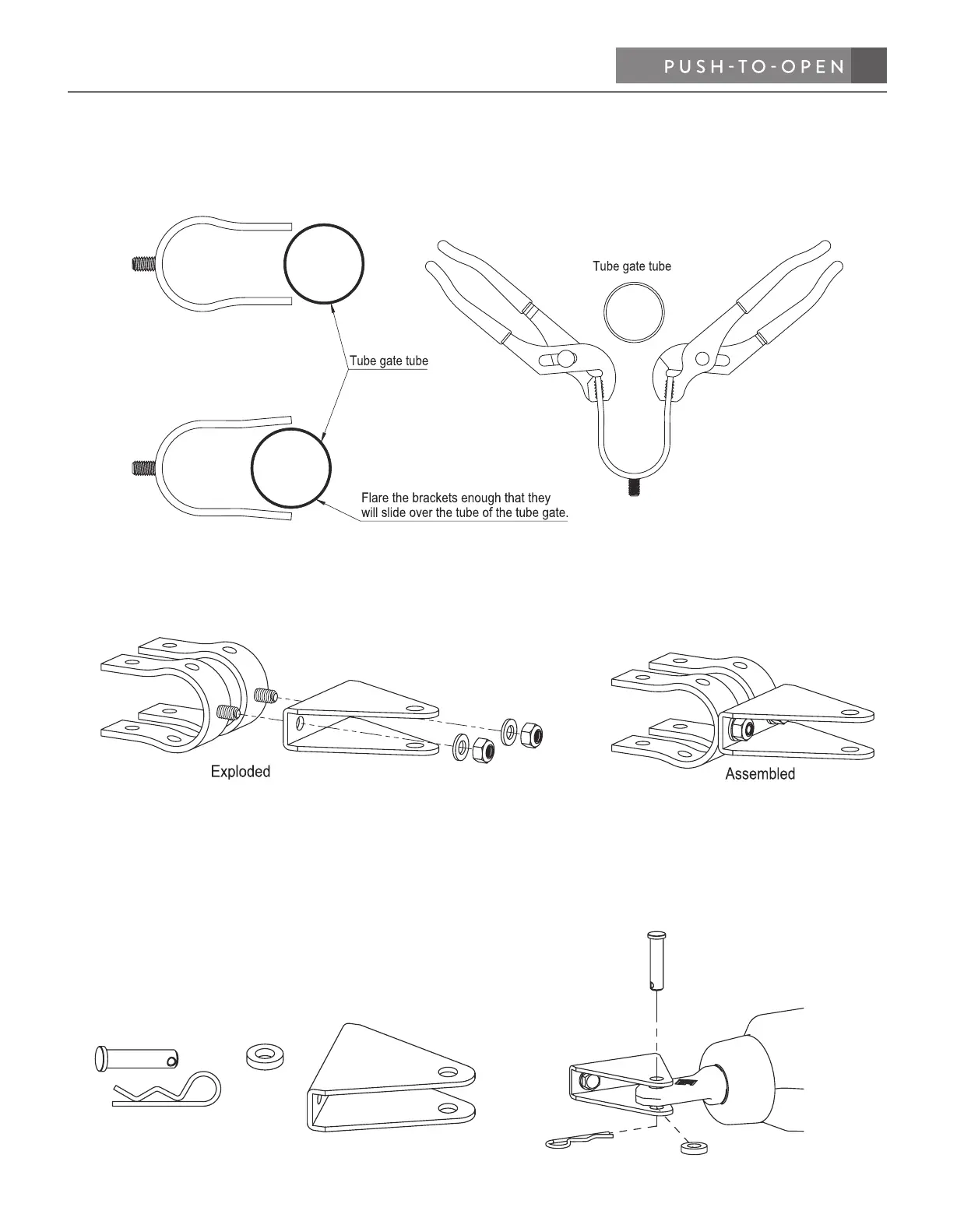 A. Before assembling gate bracket make sure the (2) tube clamp brackets fit over the tubular gate bar. If not
