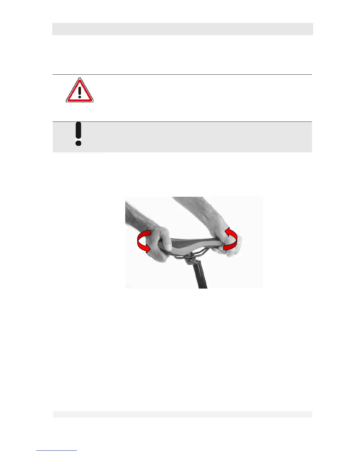 • Try to move the saddle in its clamp with your hand by alternately pushing