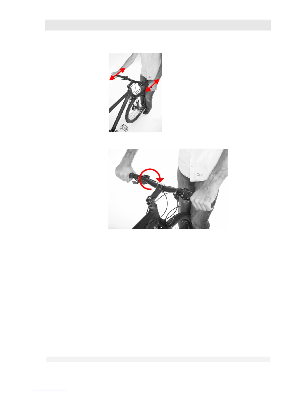 • Clamp the front wheel between your legs.