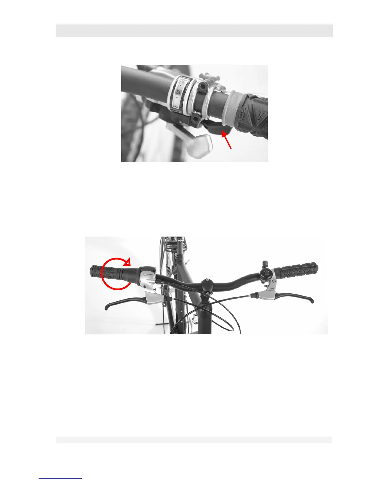Your switch grip has a ring that can be rotated in both directions. You shift to the next gear by