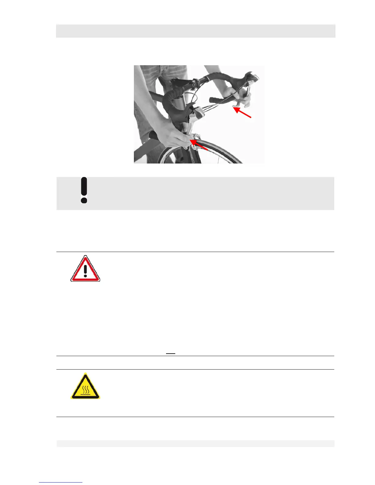 The quick-release levers on disc brakes can become hot while riding.