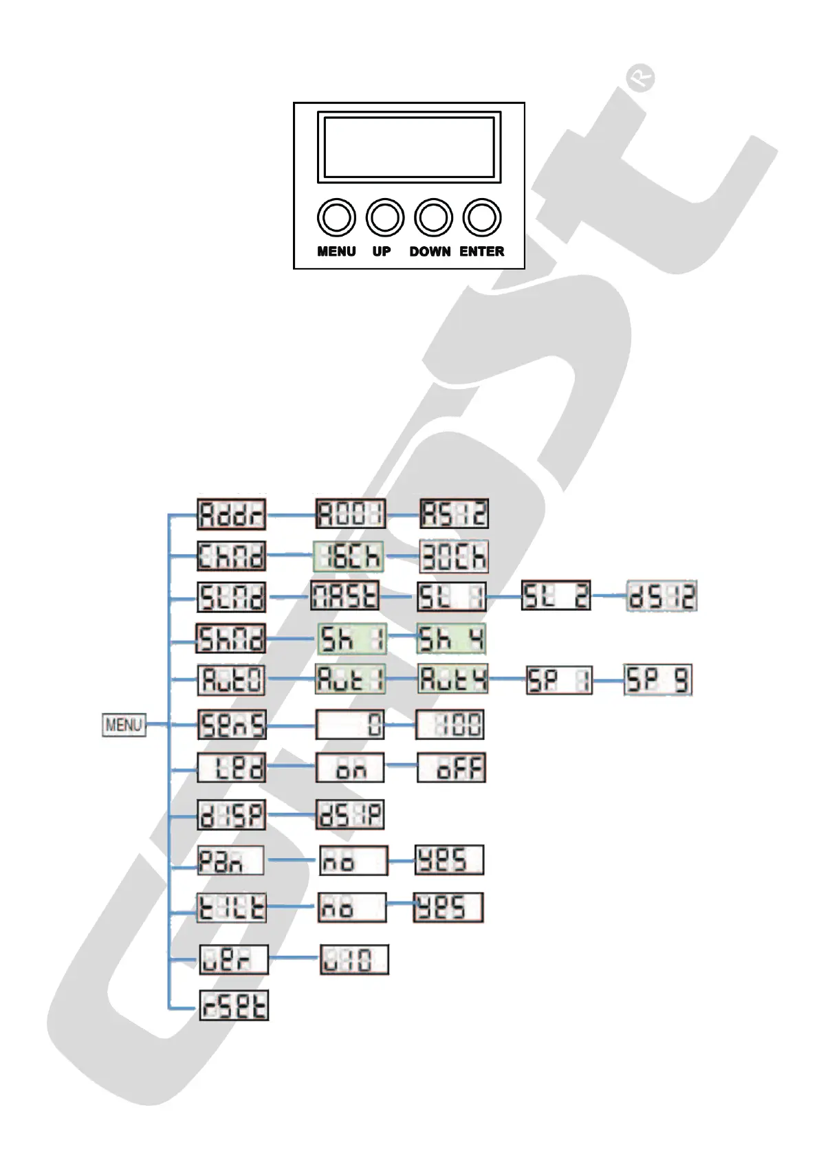 Enter : Pour entrer dans le menu ou conrmer la fonction ou la valeur active.