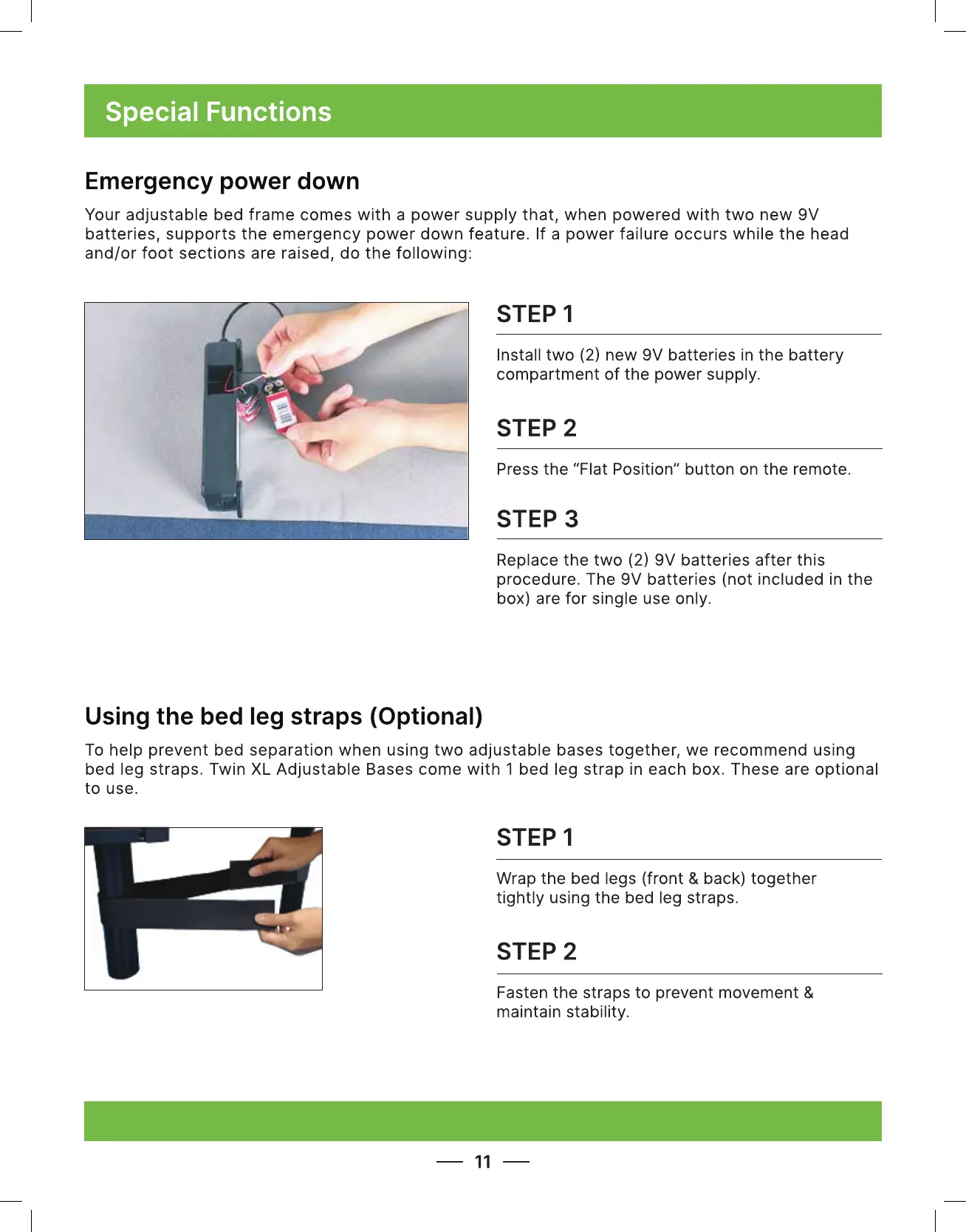 Your adjustable bed frame comes with a power supply that, when powered with two new 9V batteries,