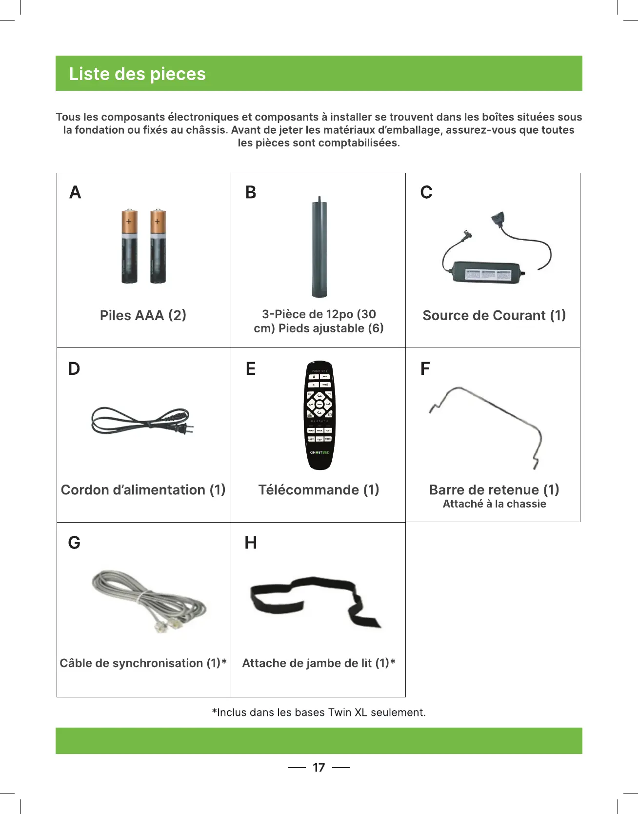 3 Pc Adjustable Legs (6) Power Supply (1)
