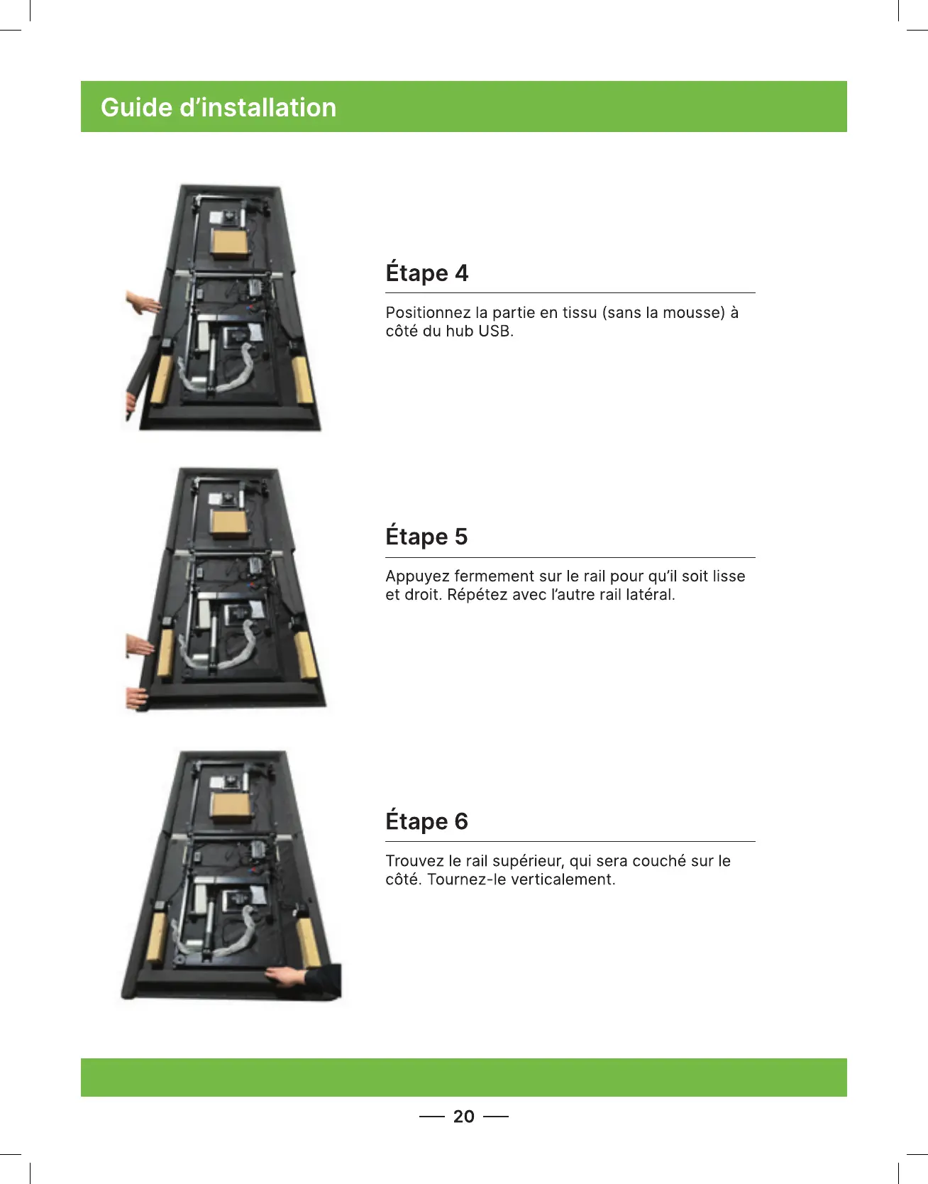 Attach the rail with the Velcro so it is smooth and