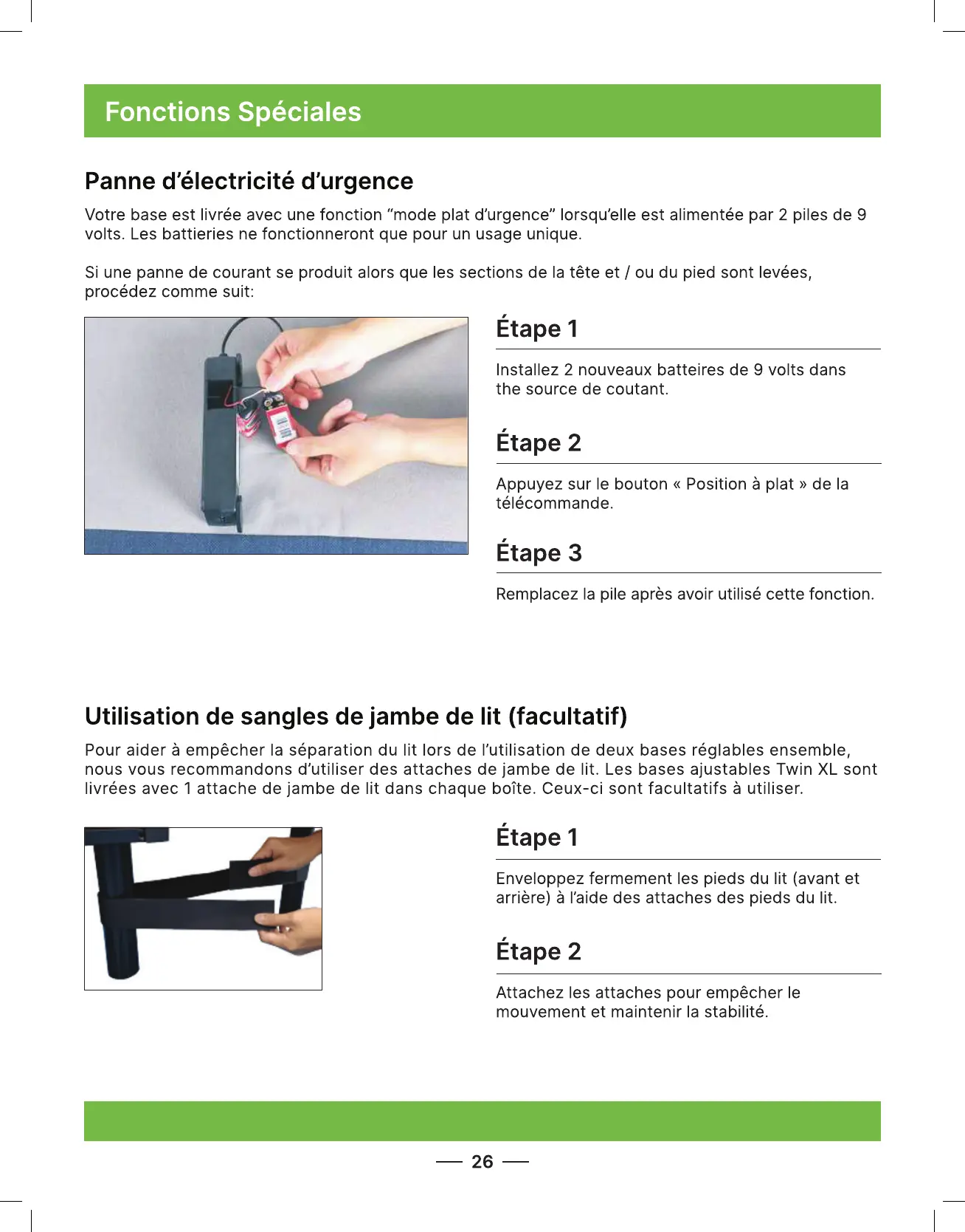 Your adjustable bed frame comes with a power supply that, when powered with two new 9V batteries,