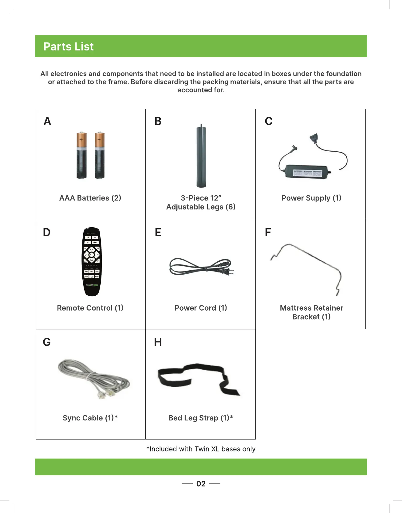 GhostBed POWER ADJUSTABLE BASE - Parts List