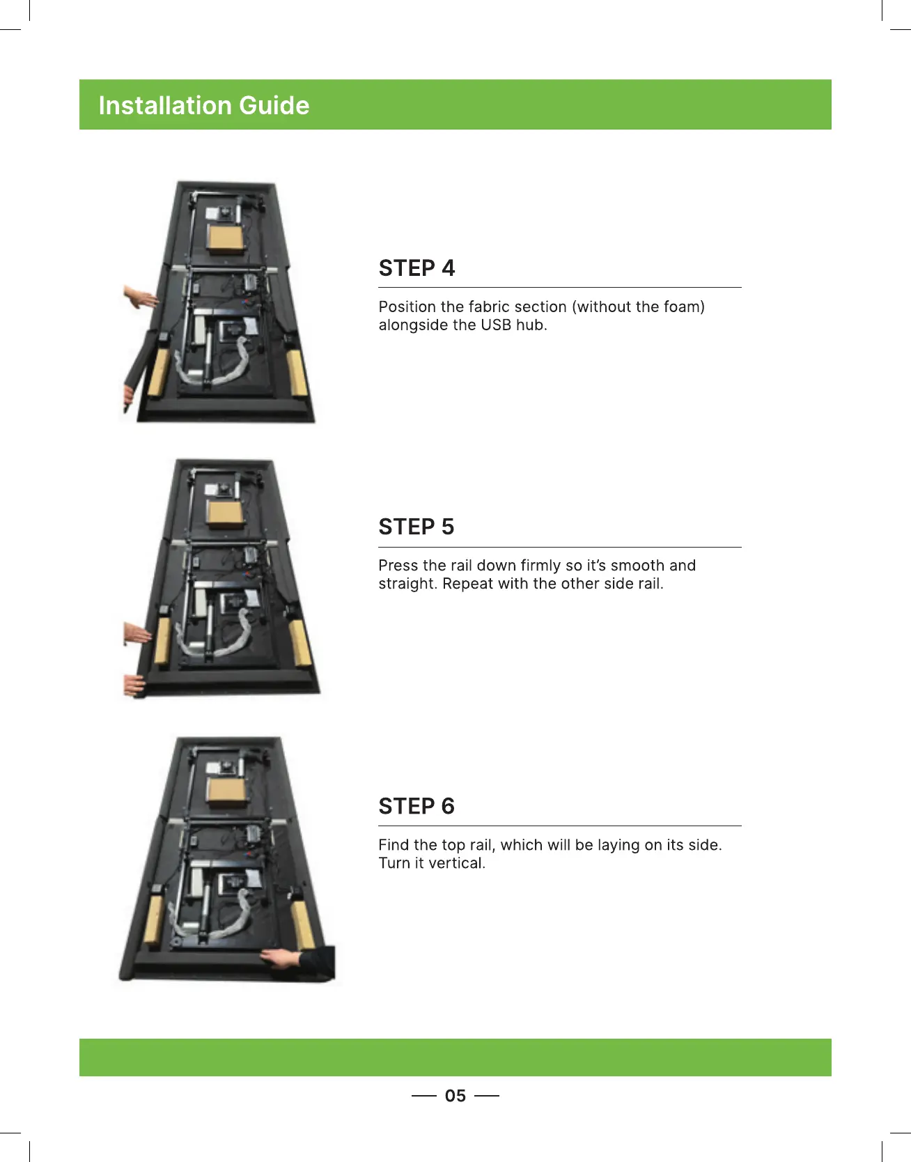 Attach the rail with the Velcro so it is smooth and