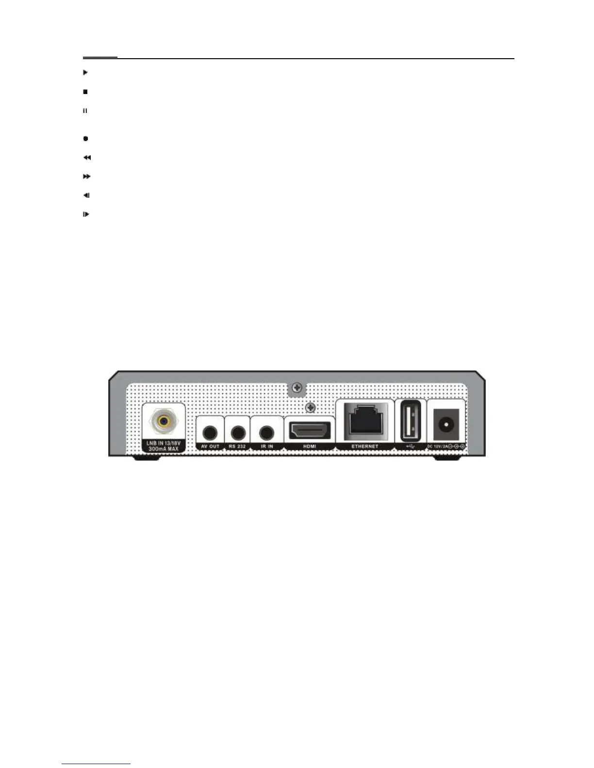 LNB IN 13/18V 500mA MAX: This port is to connect the coaxial cable from LNB of your Dish.