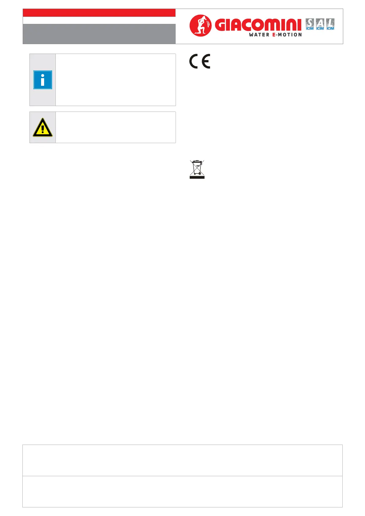 Per ulteriori informazioni consultare il sito www.giacomini.com o contattare il servizio tecnico: ' +39 0322 923372 6 +39 0322 923255 * consulenza.prodotti@giacomini.com