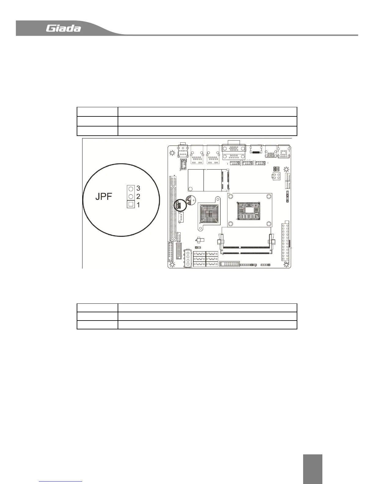 Jumper JPF allows you to enable or disable the Power Force On function. If enabled, the