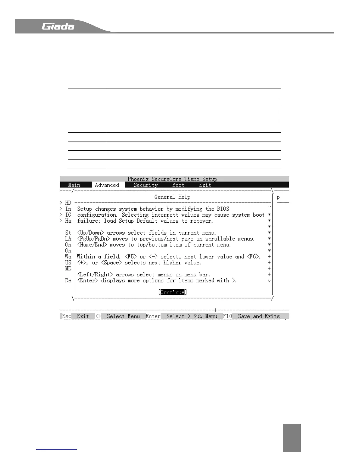 Most of the BIOS setup utility hot keys can be used at any time during the setup navigation