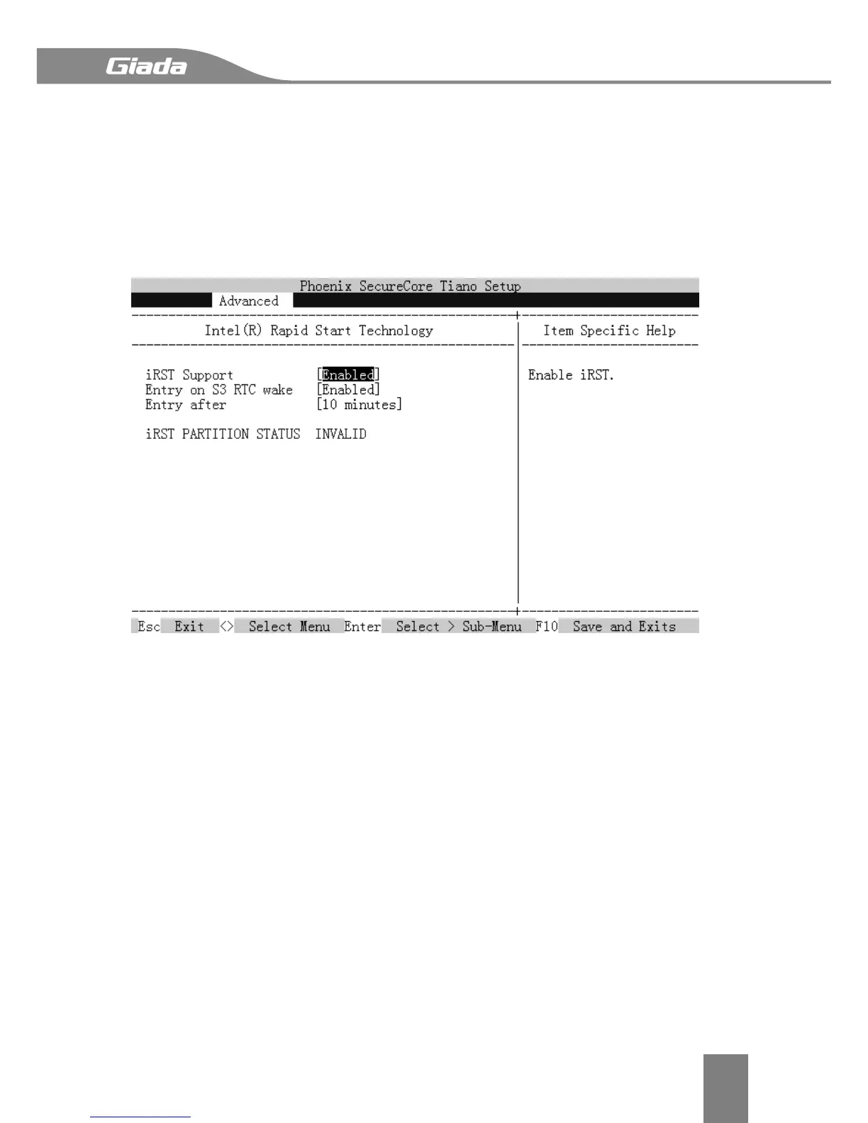 Enable Intel Rapid Start Technology, default is Enabled.
