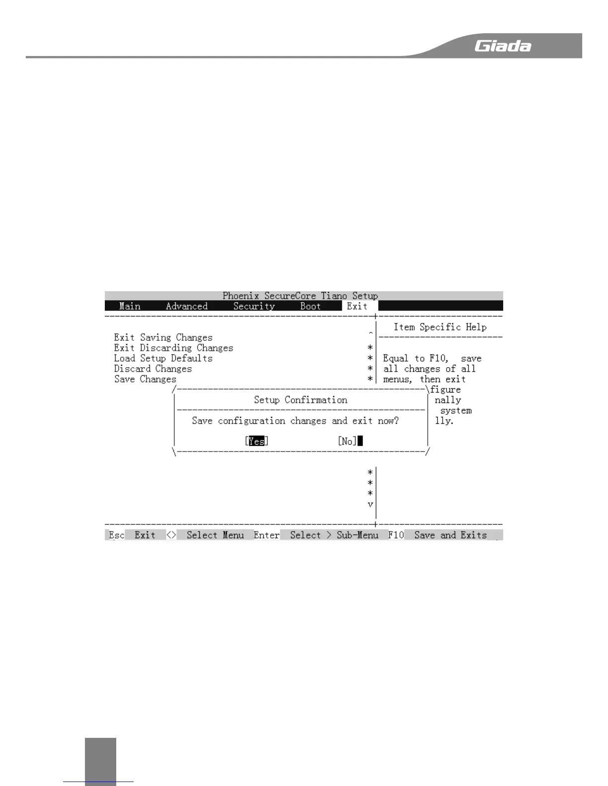 Saves changes made in BIOS Setup, but do not reset system.