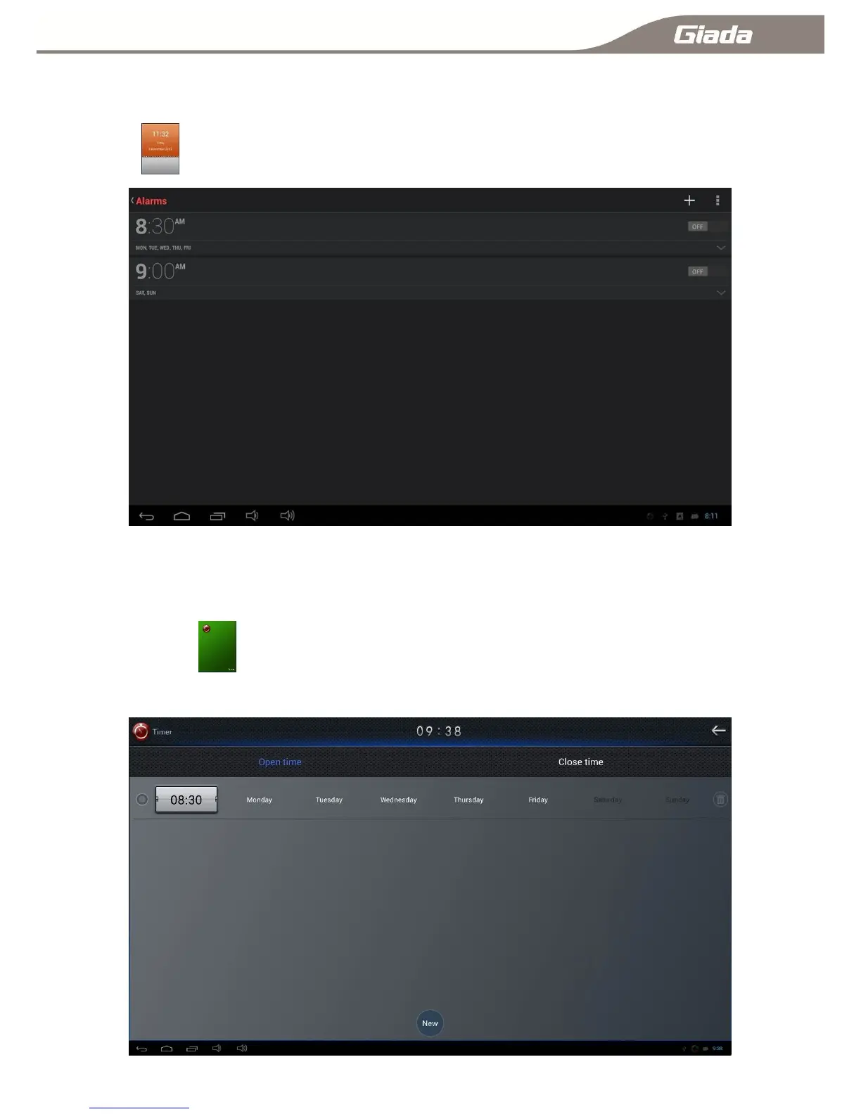 Click to enter into the main interface of alarm clock setting;
