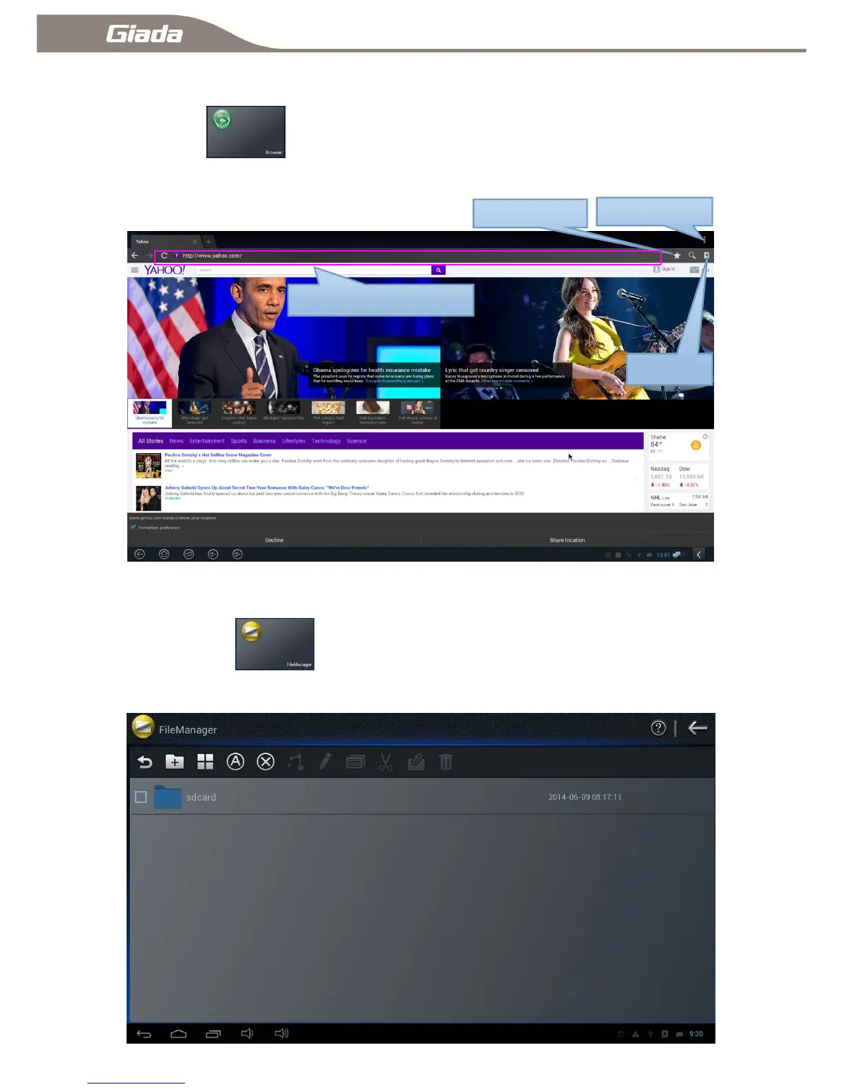 Click [Browser] to enter into the main interface of the webpage browser. System will