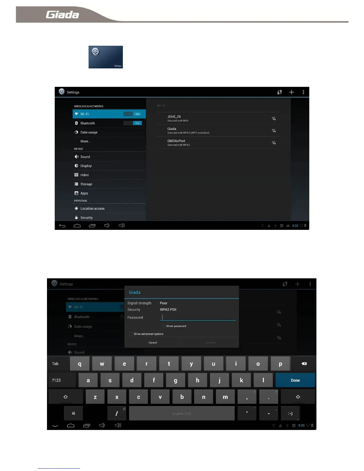 Giada Q30 - System Settings; Wi-Fi Link