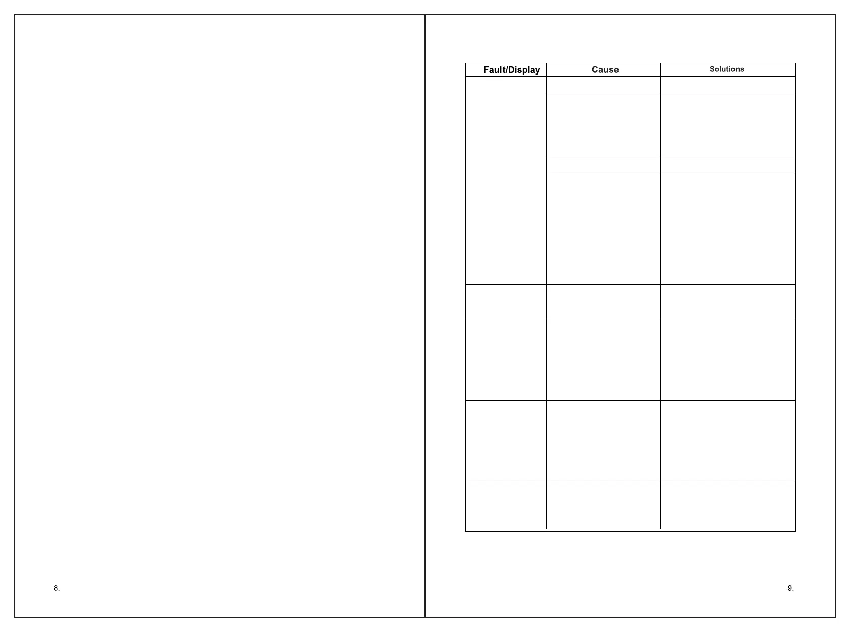 1 . I n p u t u n d e r - v o l t a g e a l a r m : W h e n t h e i n p u t D C v o l t a g e i s l o w e r t h a n 9 . 8 V