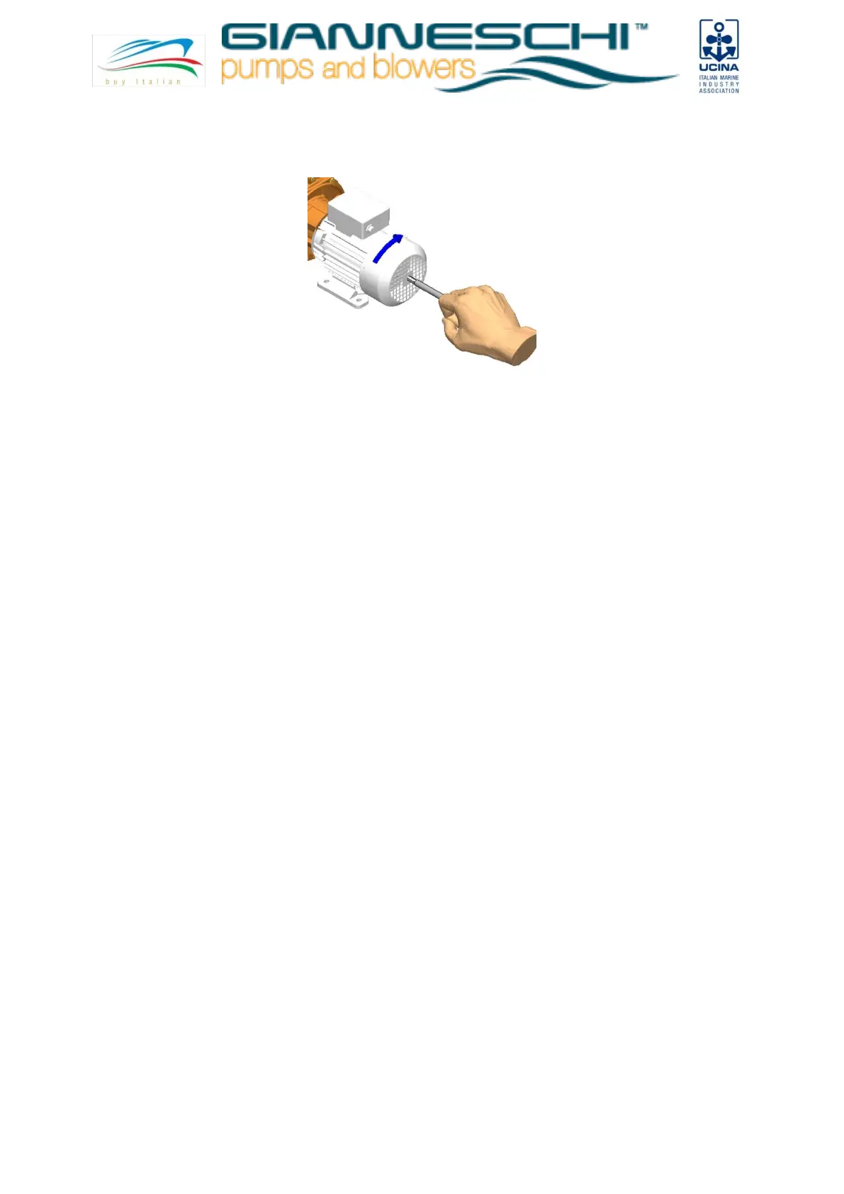 Check that the shaft turns by hand. For this purpose the pumps have a screwdriver notch on the ventilation