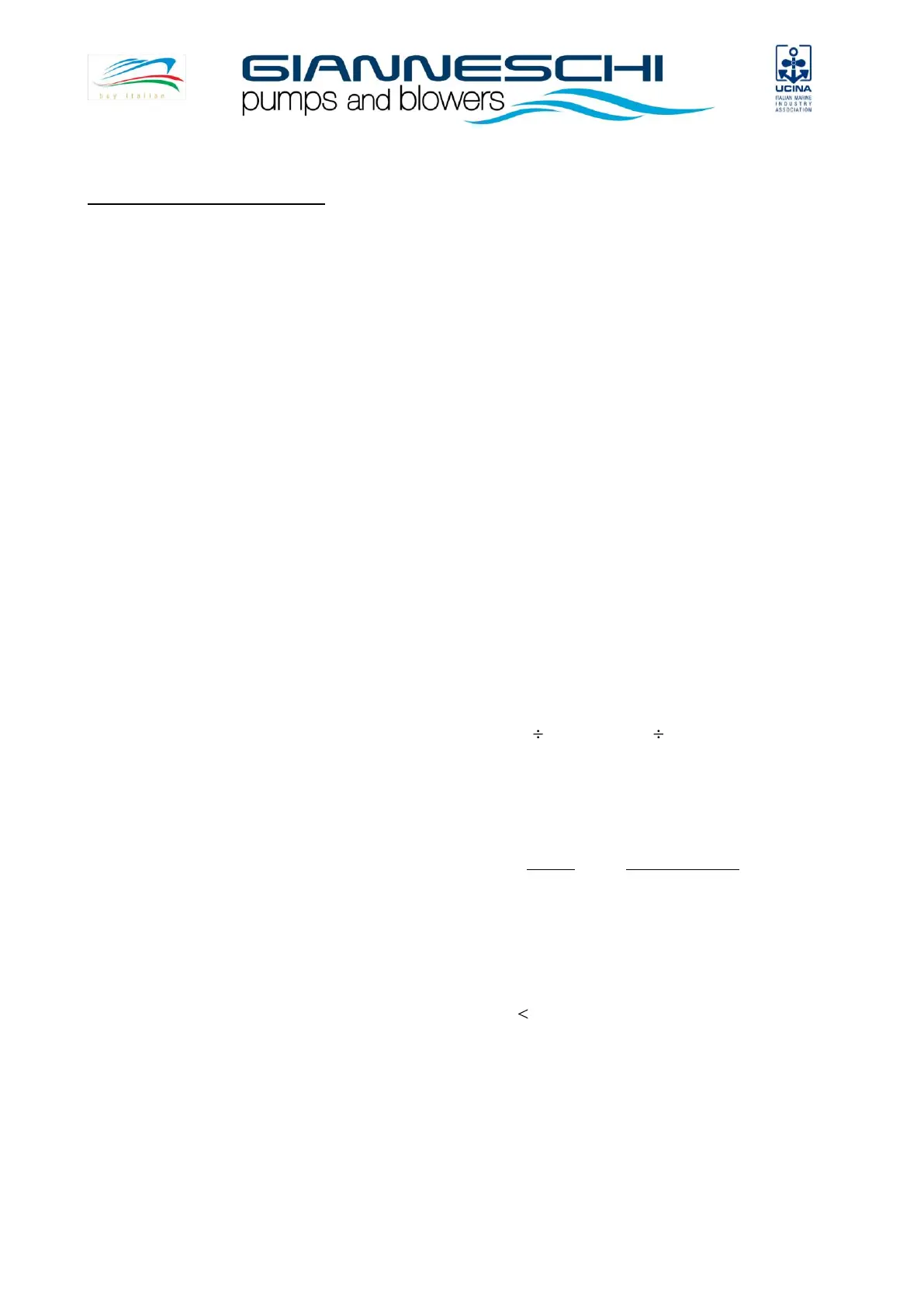 Max static pressure admitted in the pump casing 8 Bar (6 Bar to 0.75Kw)