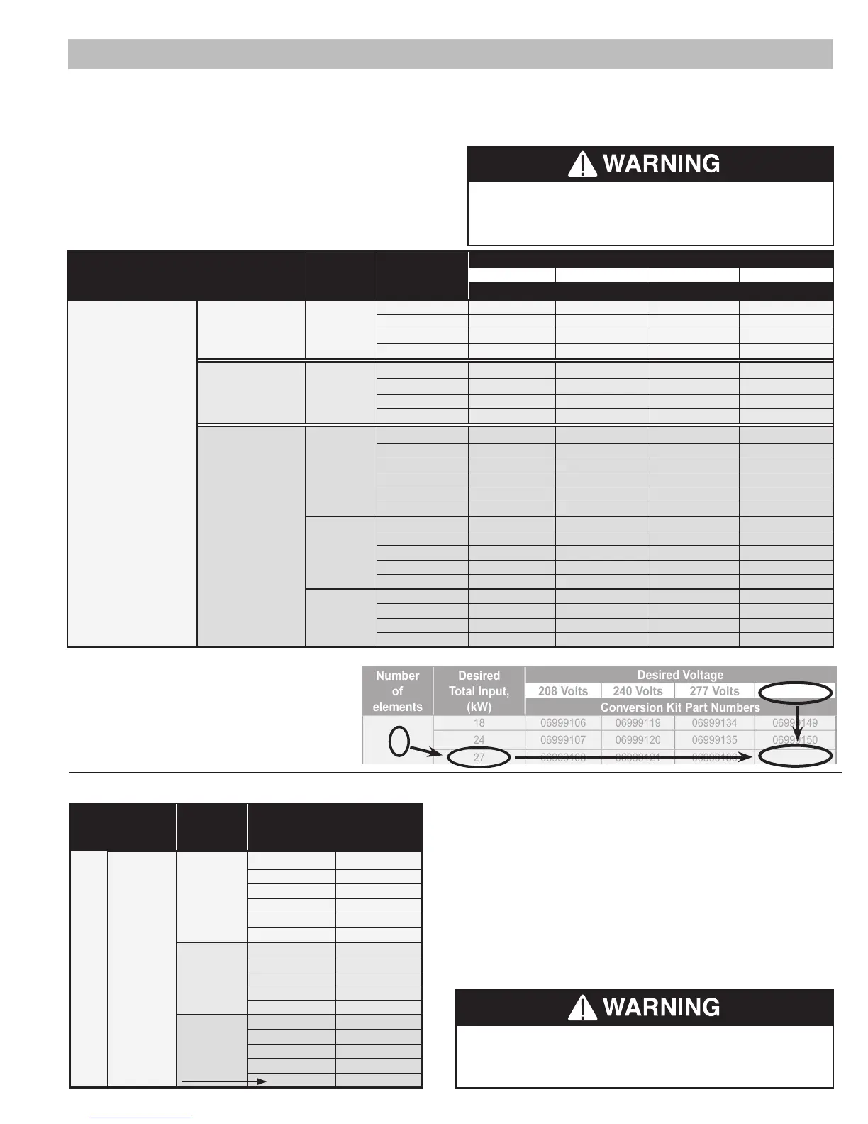 Voltage”. The appropriate Conversion Kit part number will be the