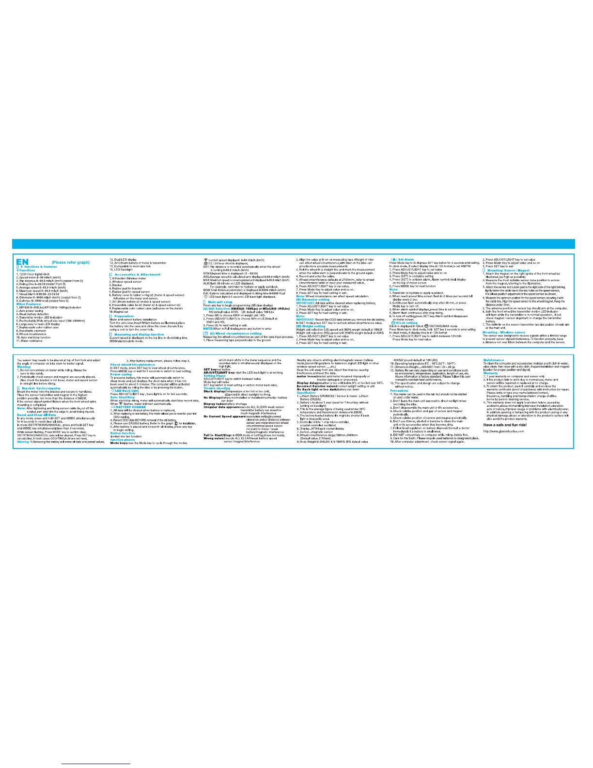 Giant Continuum 9W - Cycle Computer Features and Configuration; Detailed Function List; Main Unit Setup and Calibration; Button Operation and Data Management