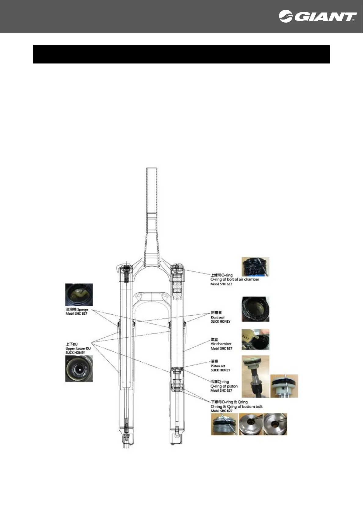 DU、防塵套、活塞:塗上 Slick Honey