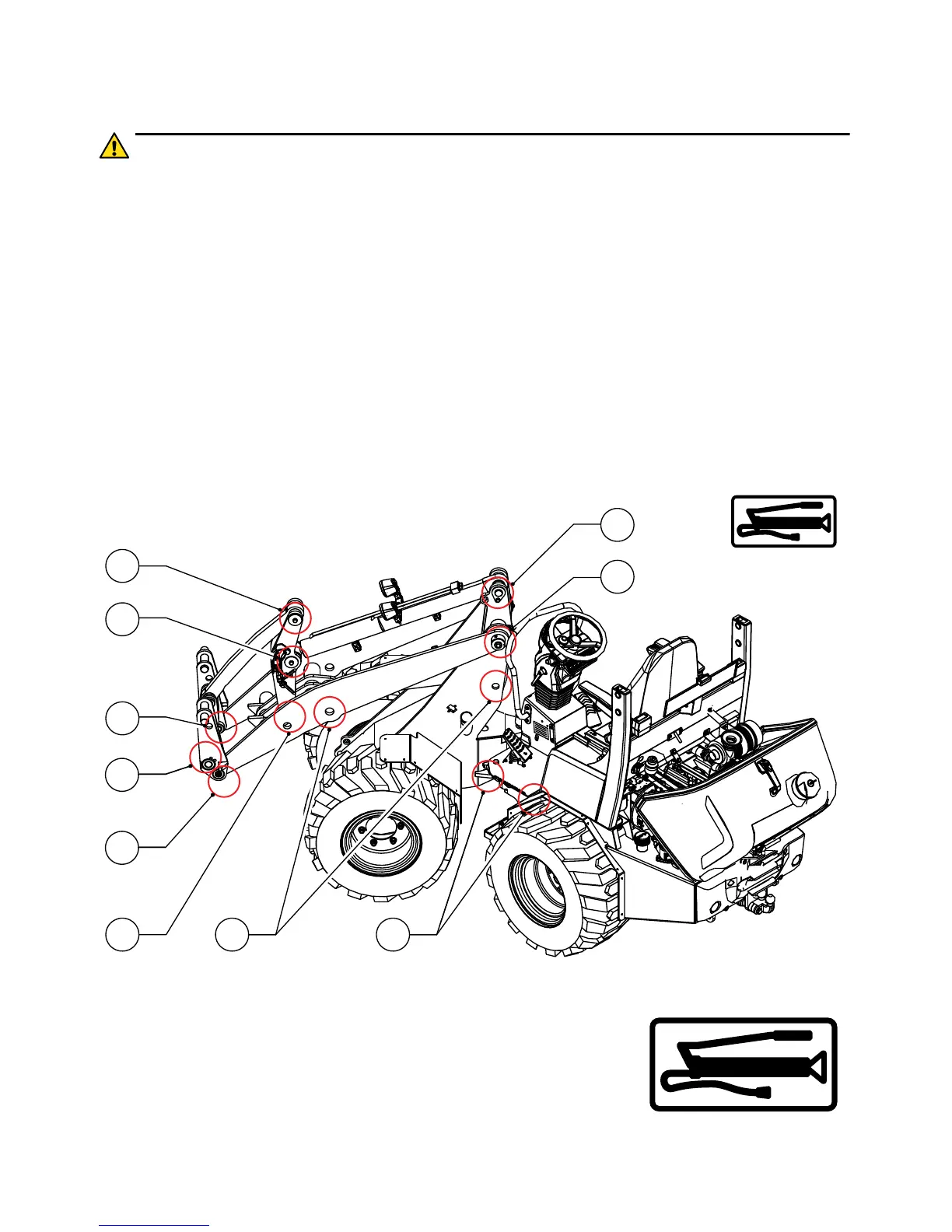 The Wheel Loader is to be lubricated DAILY at the following points: