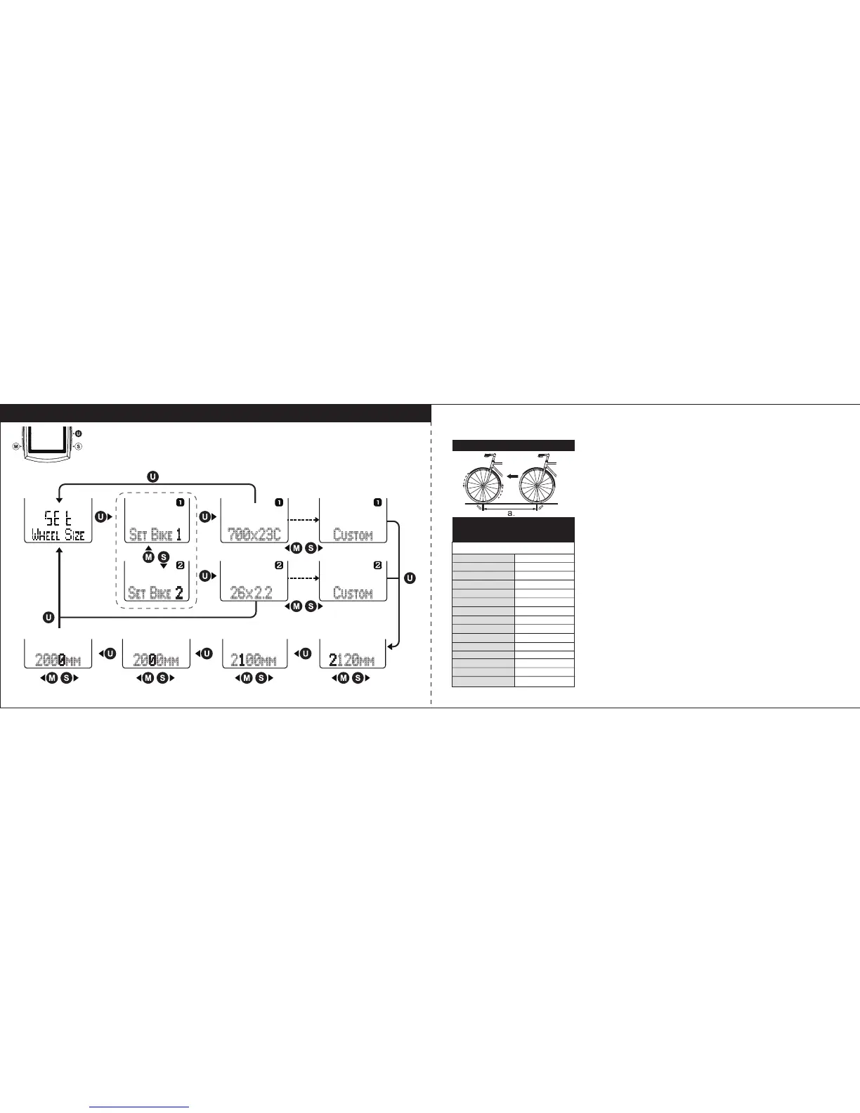 key to enter Wheel Size setting. Follow the key flow