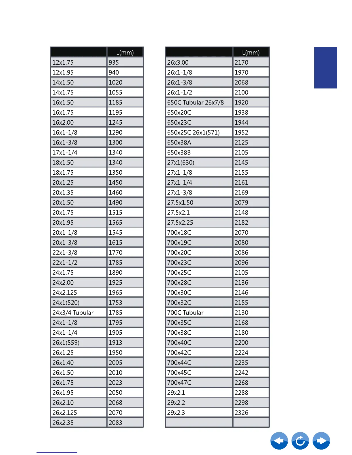 Giant NEOSTRACK - Wheel Size and Circumference; Tire Size to Circumference Chart
