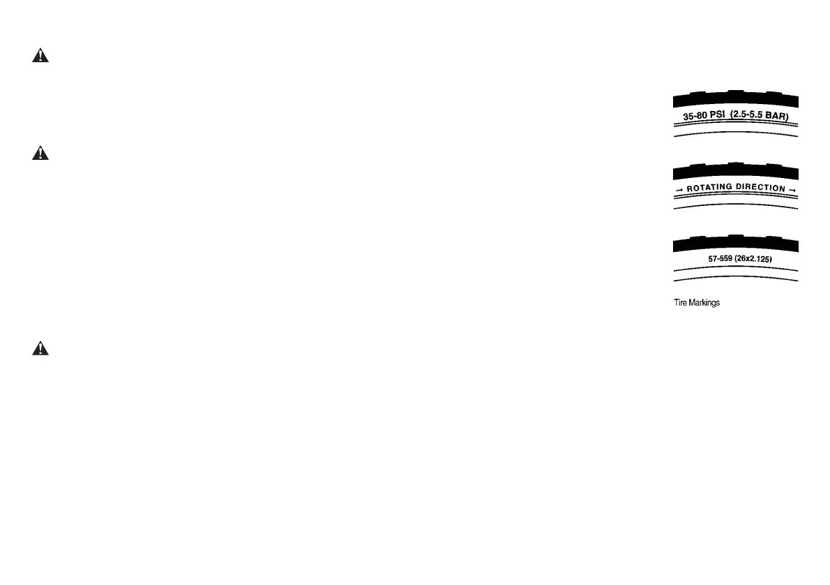 pressure may blow the tire off the rim, which could cause damage to the bike and injury to the rider and bystanders.
