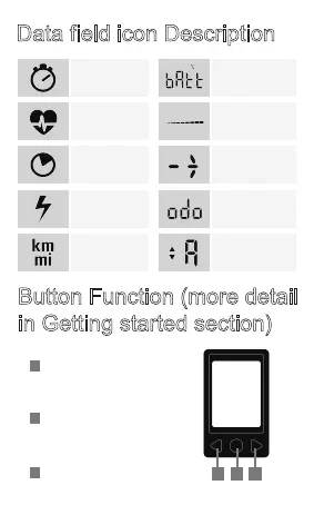 Giant RideControl Plus - Data field icon Description; Button Function