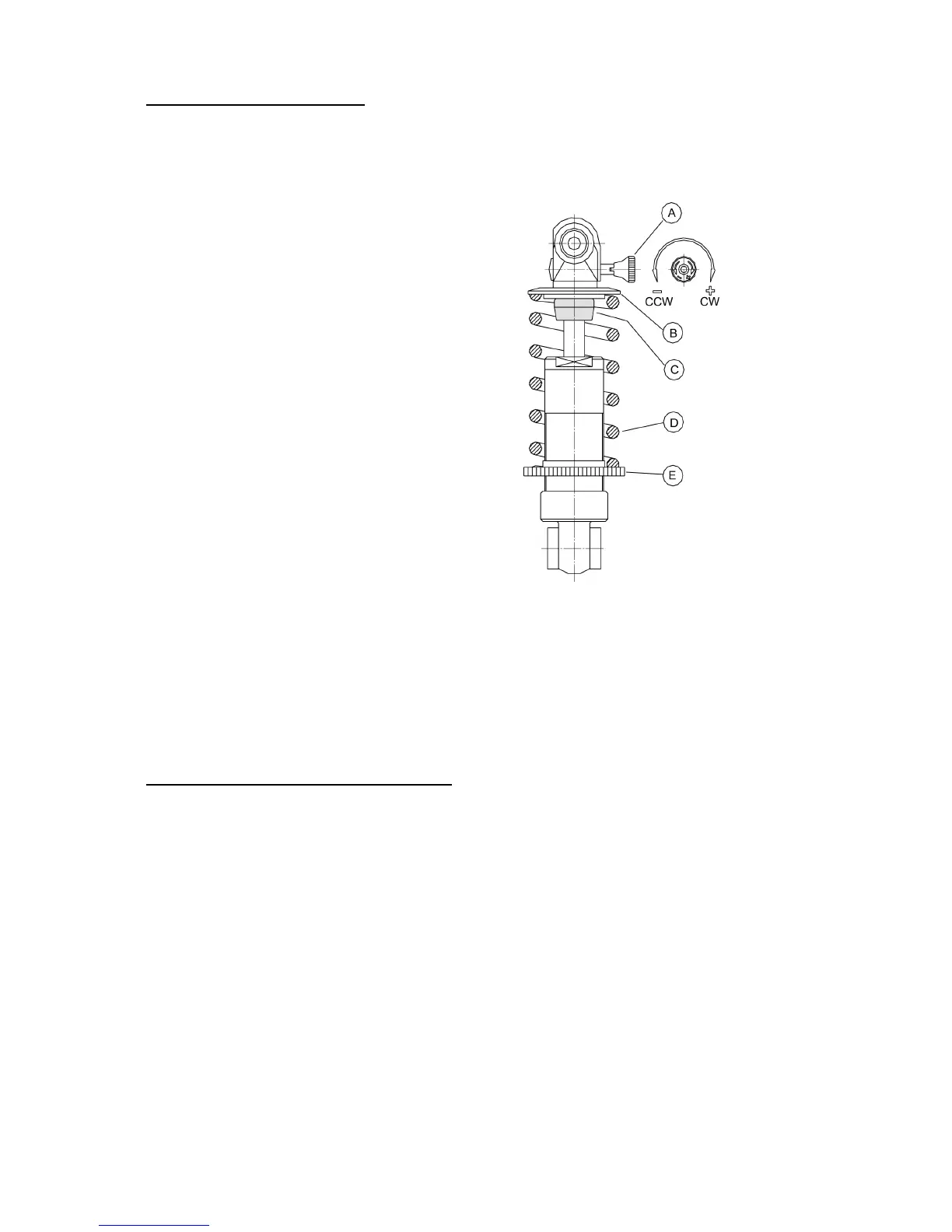 For a softer spring, turn the knurled compression ring (E) anti-clockwise to relax or unload the spring.