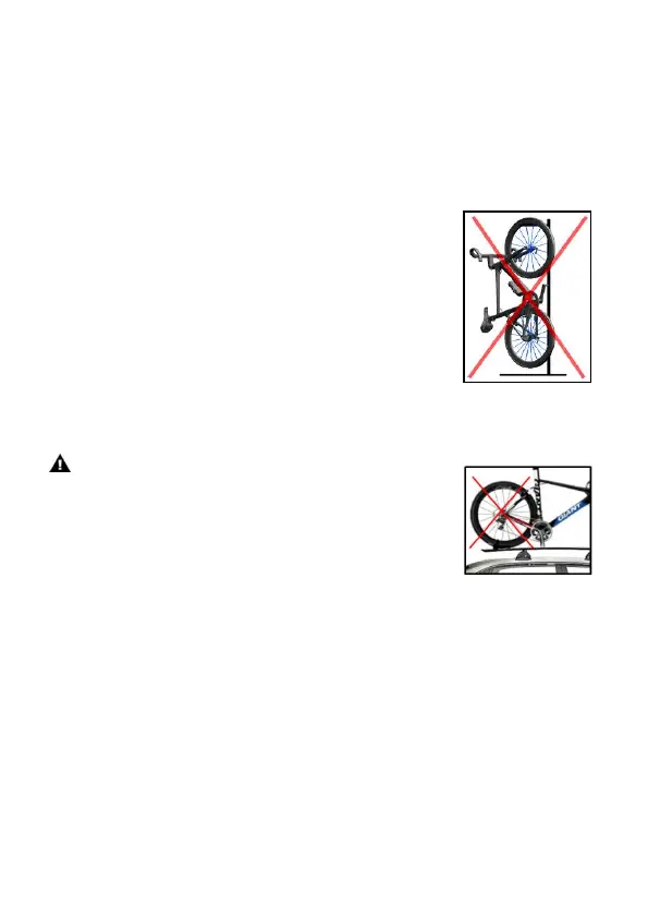 CAUTION: Tying the bike with the wheels to a car rack may