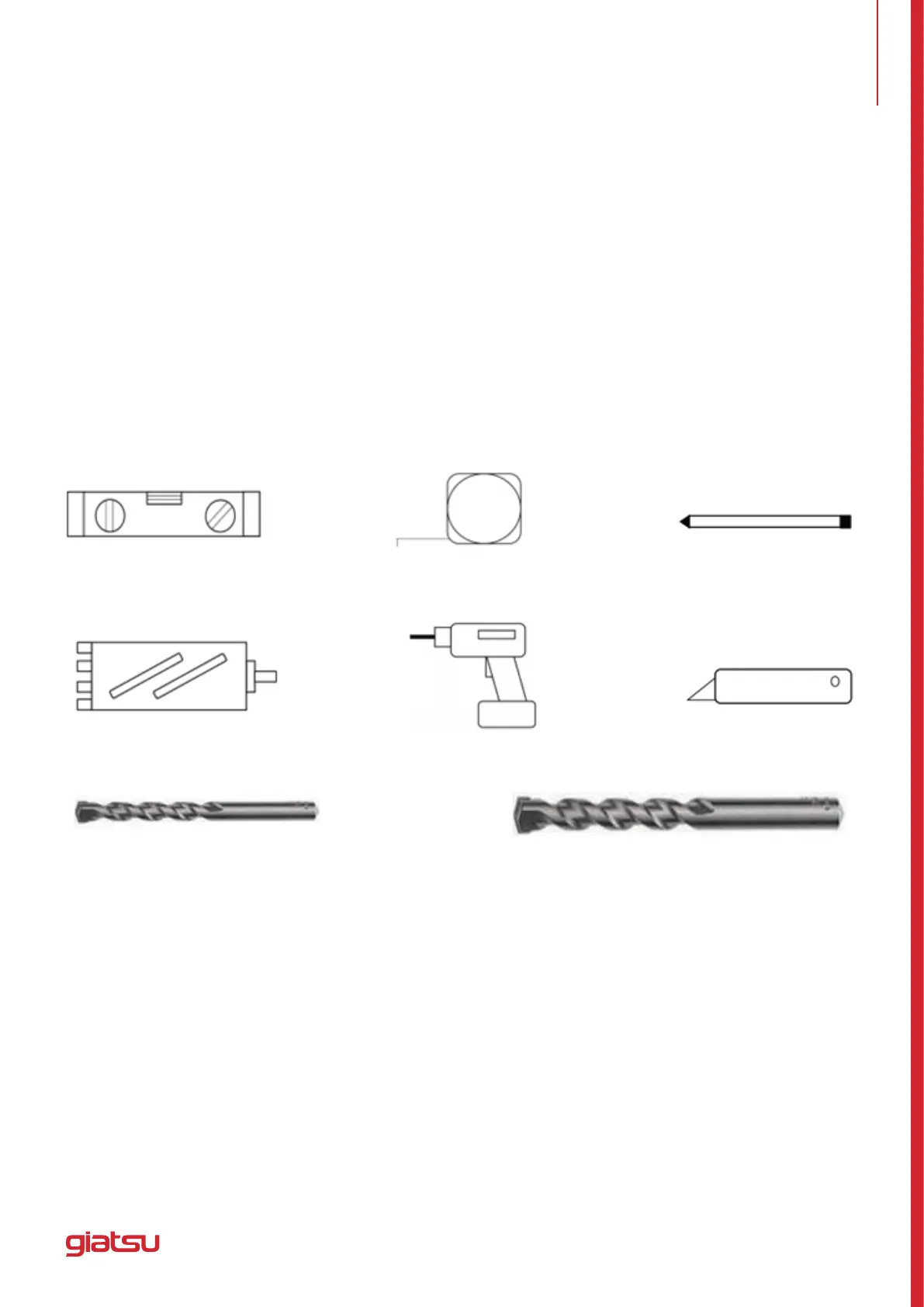 • BEFORE STARTING INSTALLATION, PLEASE ENSURE YOU HAVE ALL SUITABLE EQUIPMENT AVAILABLE