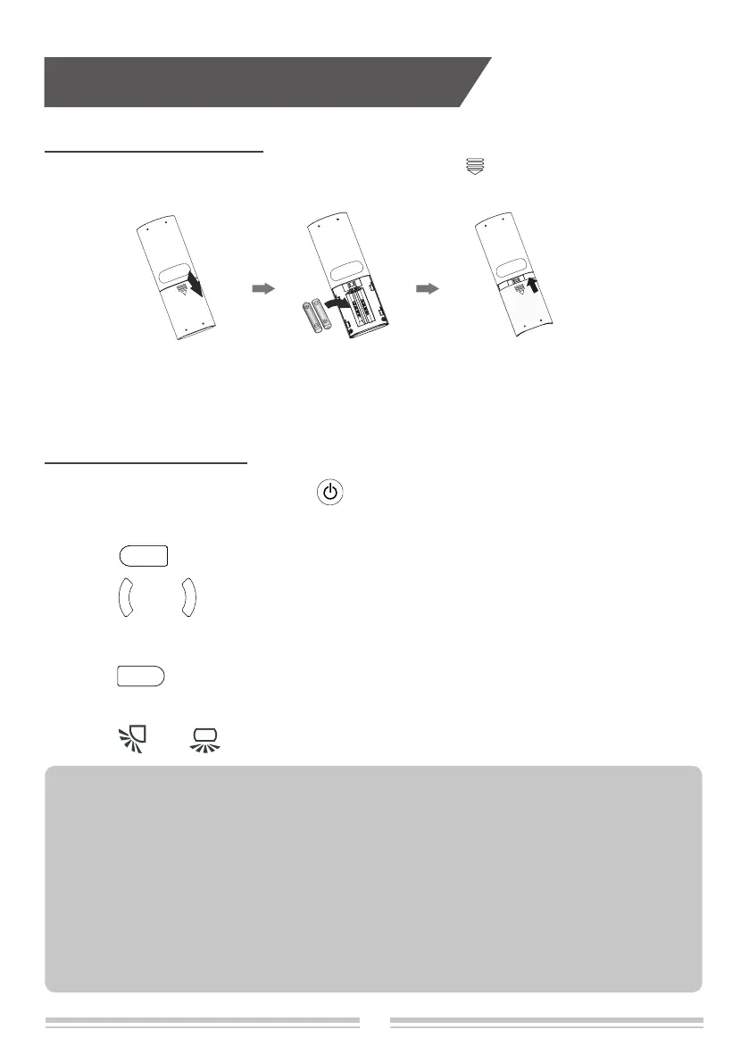 ● If the display on remote controller is fuzzy or there’s no display, please replace batteries.