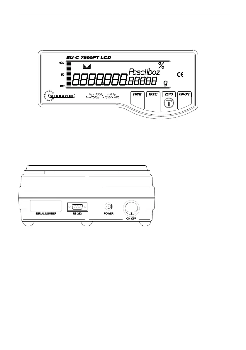 Nella parte anteriore della bilancia si trova il pannello di controllo (Fig. 1) che comprende il