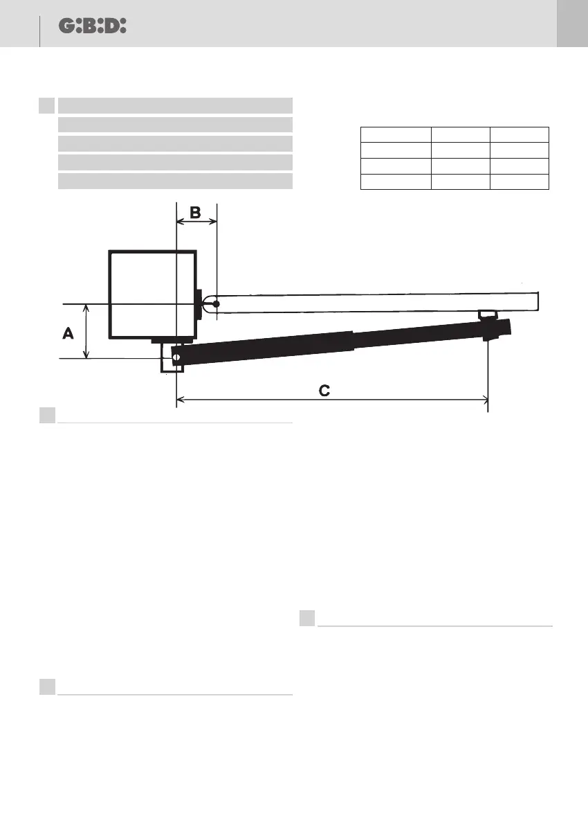(A) è la distanza dall’asse del cardine del cancello all’asse di rotazione dell’operatore