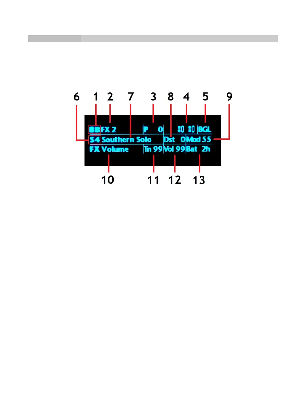 (13) Estimated remaining guitar battery life in hours