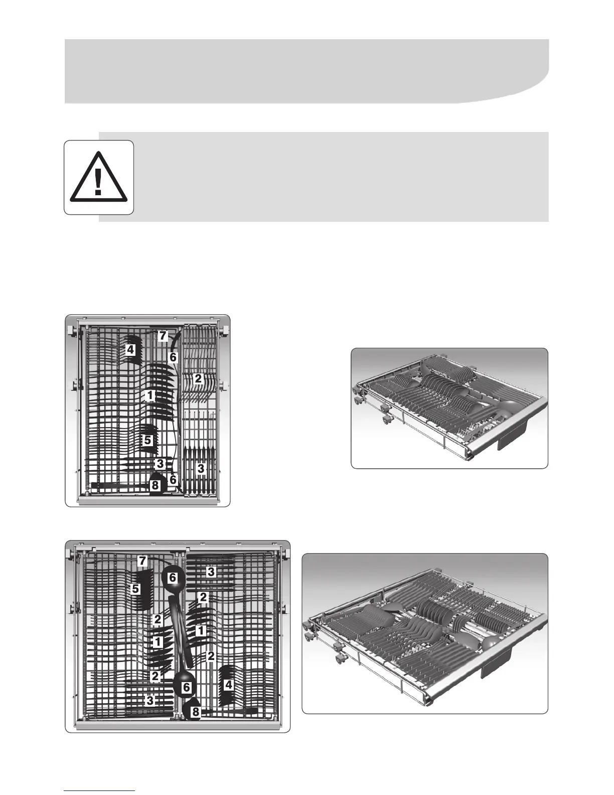 appropriate positions. Make sure the silverware is not nested, as it might make washing
