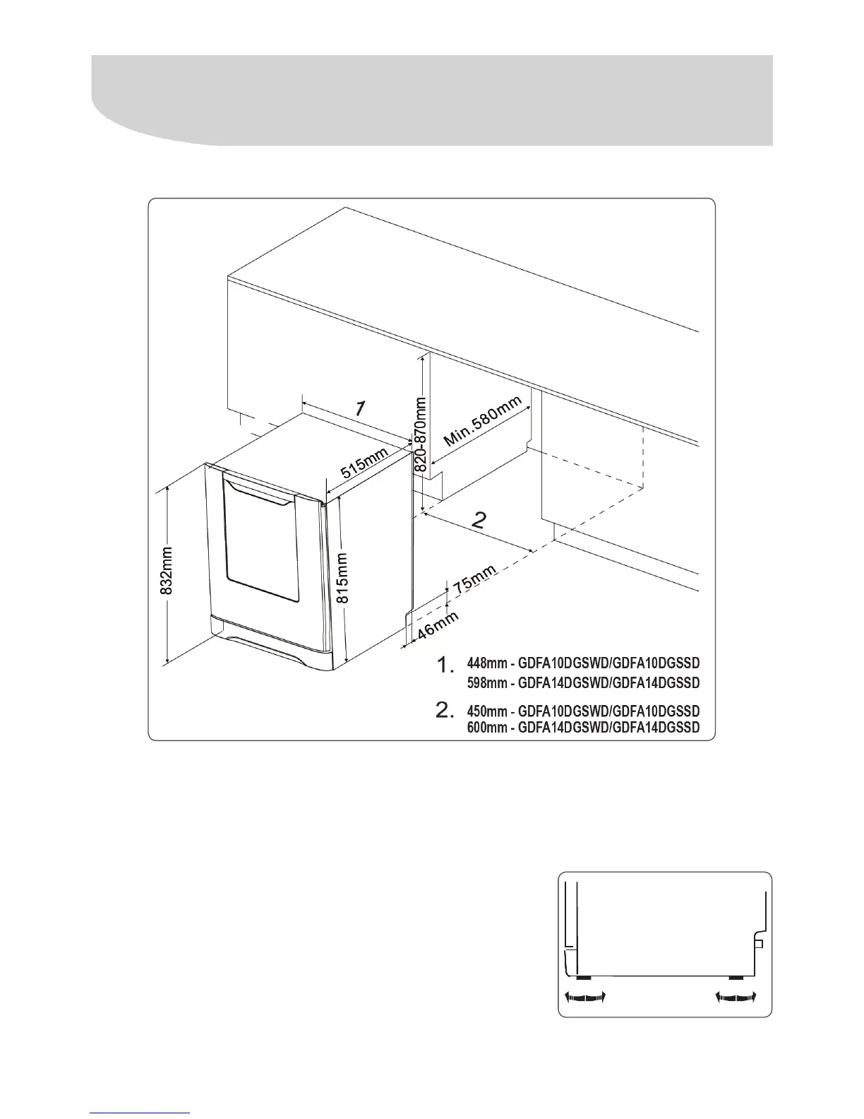 2 When you are levelling the Dishwasher, be careful not to