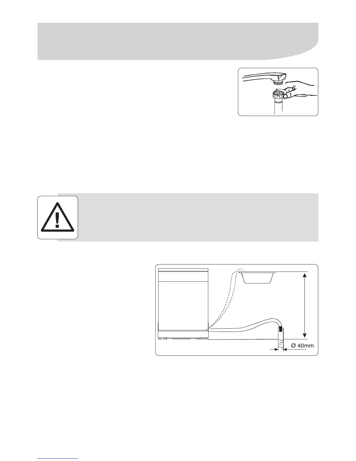 Connect the drain hose to the Dishwasher, making sure that it is well t to avoid leaks.