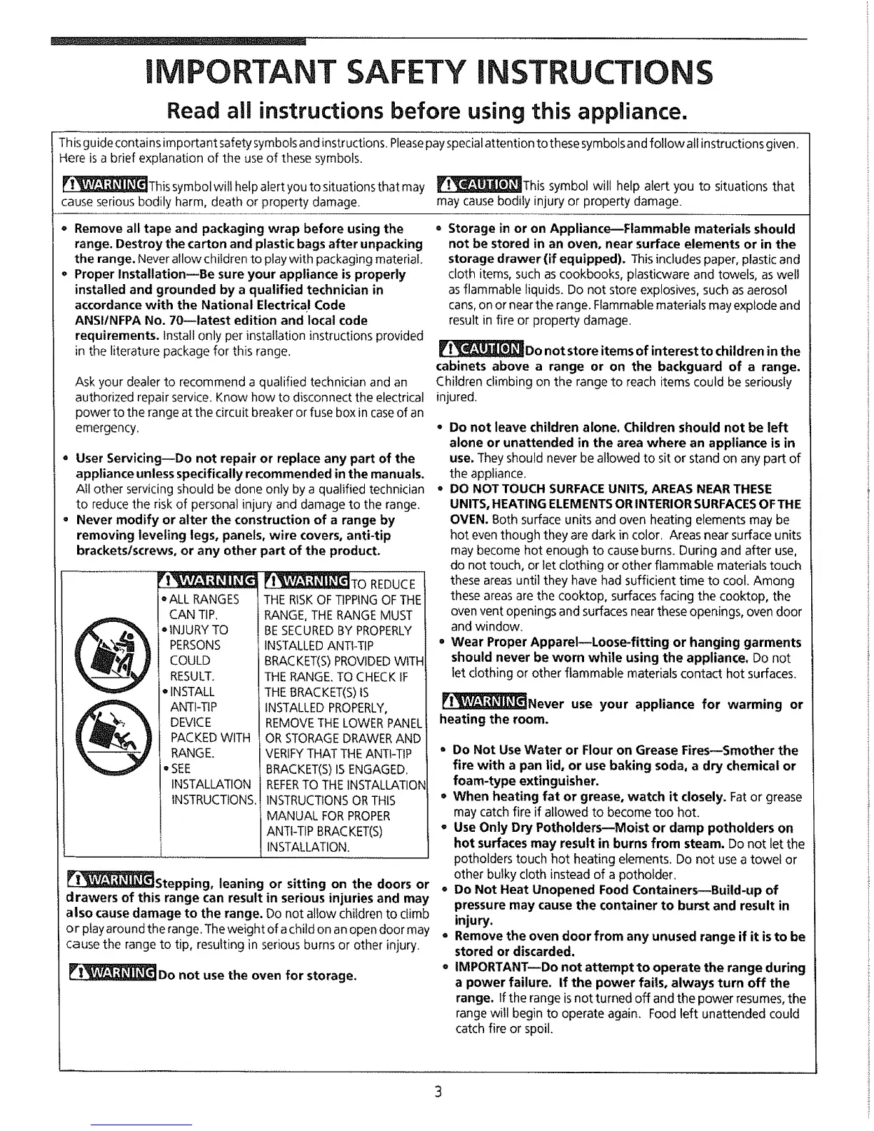° IMPORTANT--Do not attempt to operate the range during
