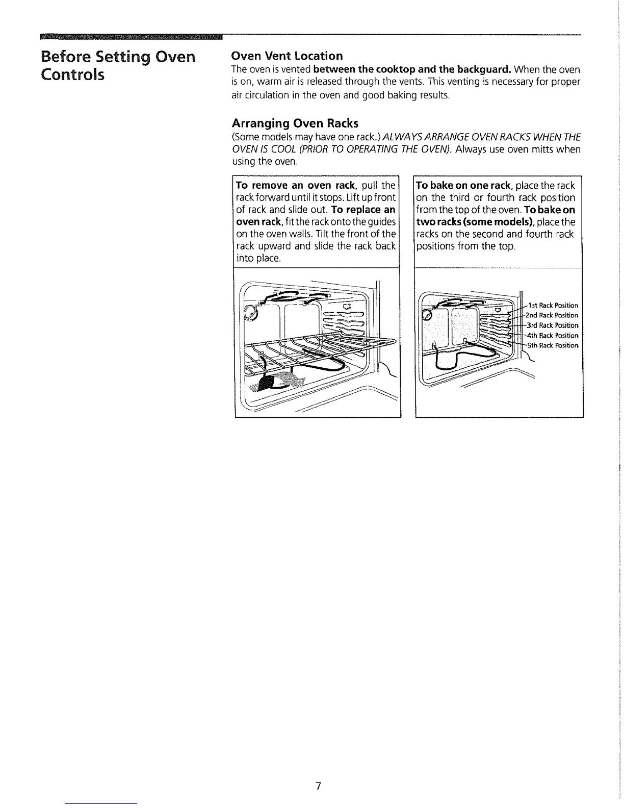 (Some models may have one rack.)ALWAYS ARRANGE OVENRACKS WHEN THE