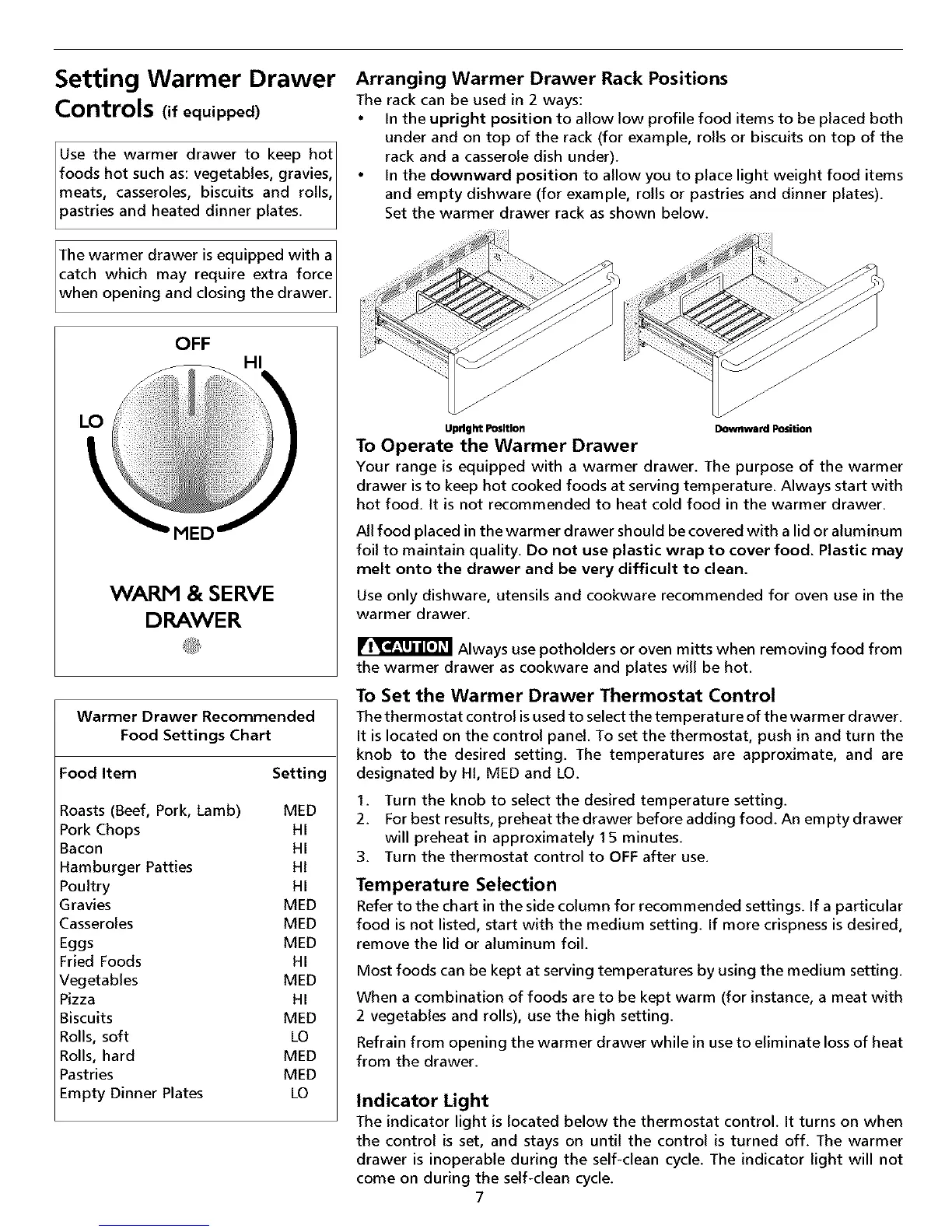 The thermostat control isusedto select the temperature ofthe warmer drawer.