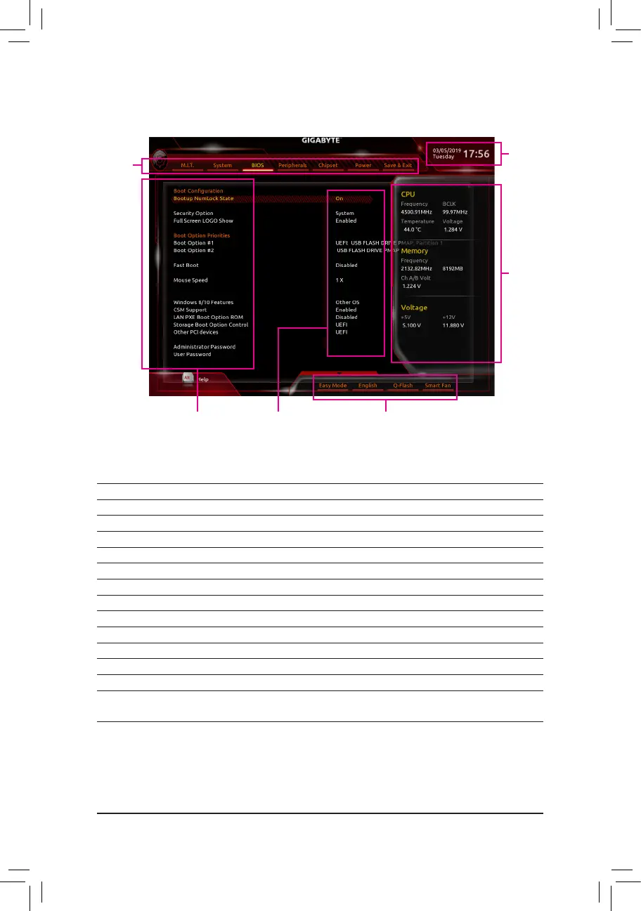 <F7> Load the Optimized BIOS default settings for the current submenus