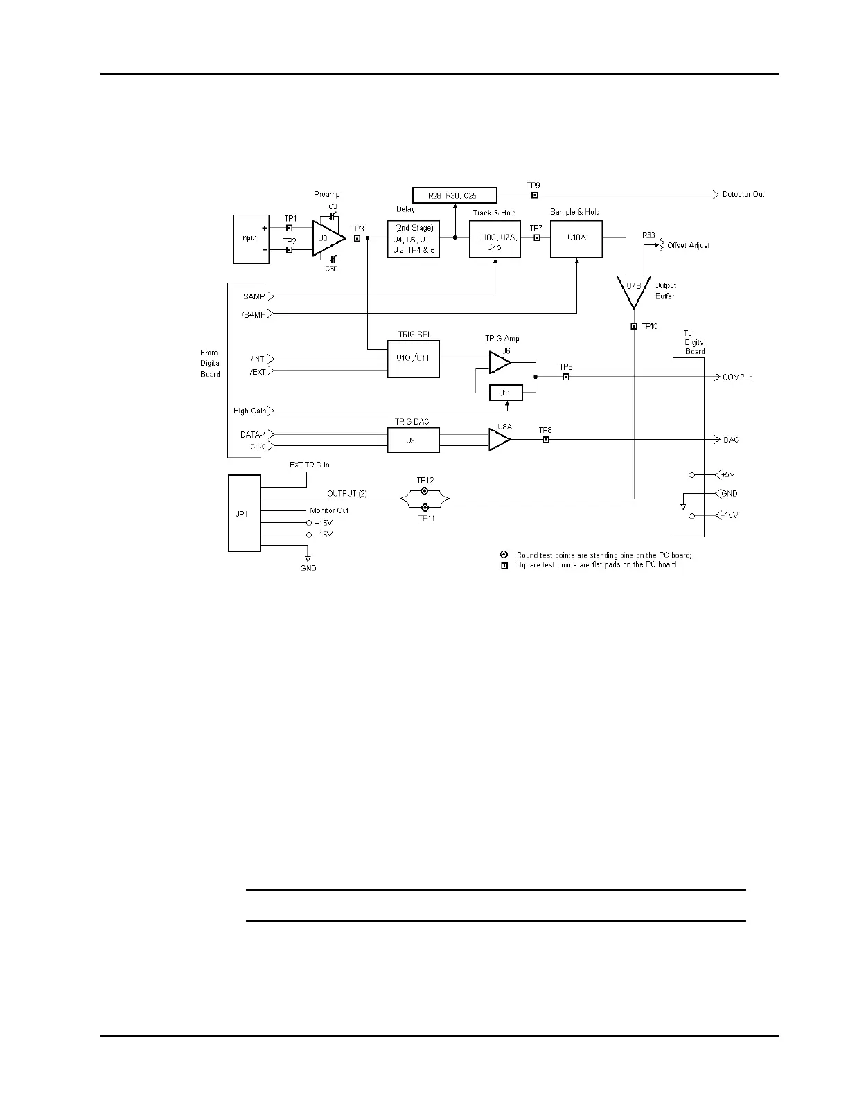 gets translated into a voltage between -0.1 V and about +5 V by U8A. Digital board comparator